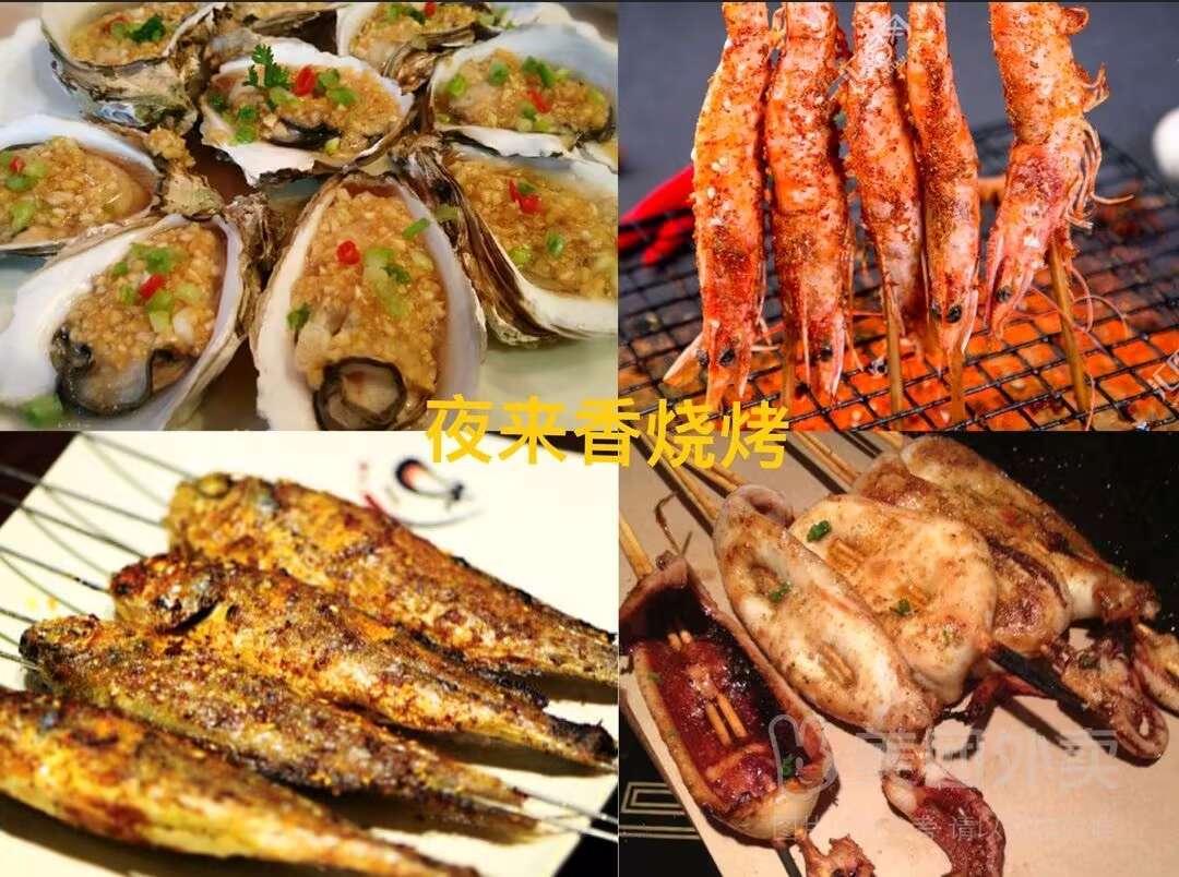 大生蚝六个+鱿鱼片两串+小黄鱼3条+烧烤海鲜5串