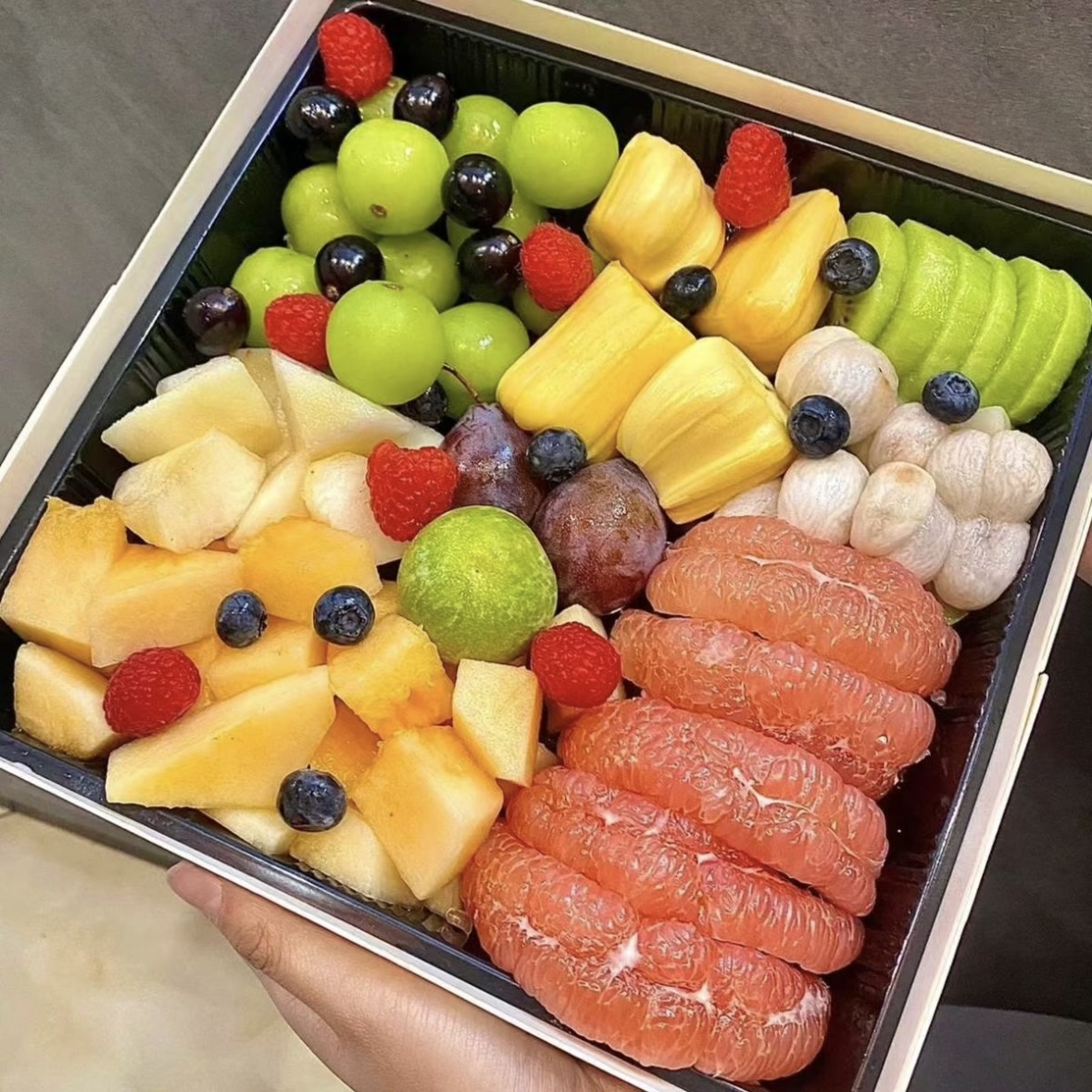 【精品果盒】柚子提子瓜瓜+8拼豪华缤纷鲜果切盒 约750g 下午茶会议接待露营果切拼盘