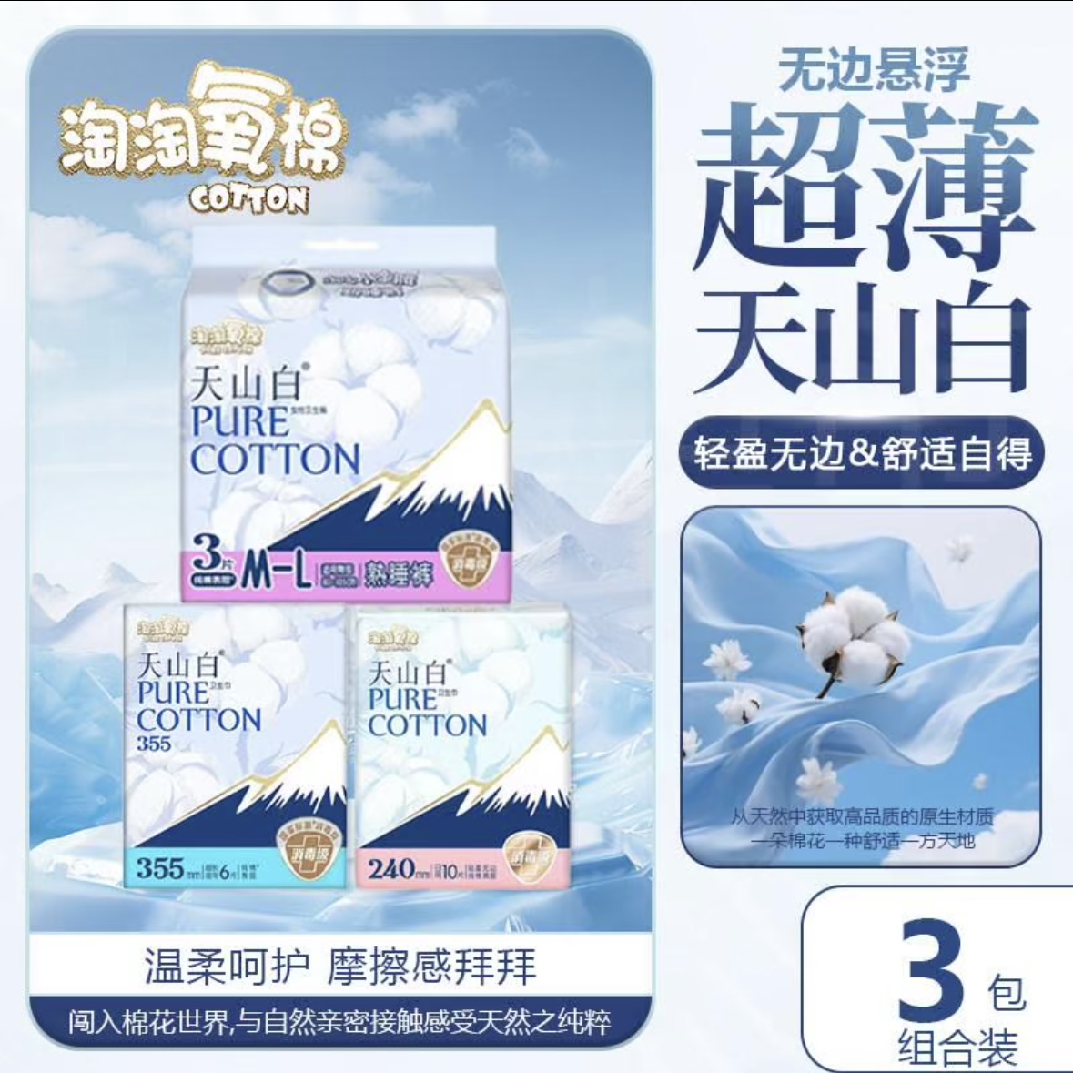 【超值组合】洁伶 天山白卫生巾 日用夜用安心裤姨妈巾组合装 3包